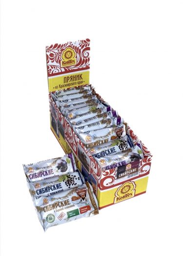 Фирменный пряники с начинкой из вареной сгущенки, чернослива и черемухи. В яркой индивидуальной упаковке по 75г.